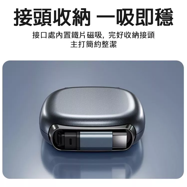 磁吸收納設計,接頭一吸即整齊,外出攜帶、車用、辦公都超方便。