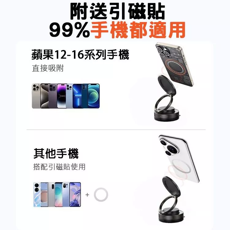 其他手機則可透過附贈的引磁貼片輕鬆安裝,適用於市面上約99%的手機型號。